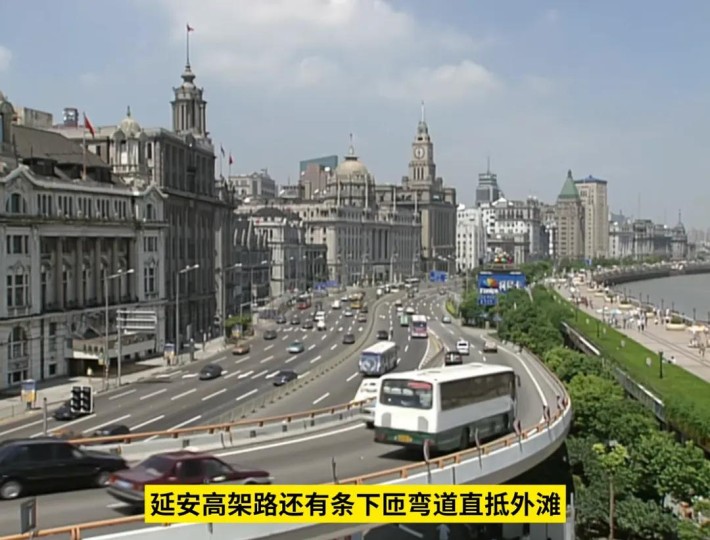 当时延安高架路还有条下匝弯道直抵外滩,这里偏偏是看外滩最漂亮的地方,当时人们把延安路高架称为“亚洲第一弯”